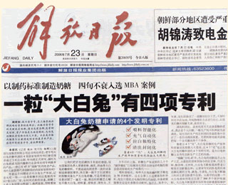 2006年,大白兔奶糖申請了4個發明專利,這4各專利是冠生園立足傳統創新生產工藝的結晶。
